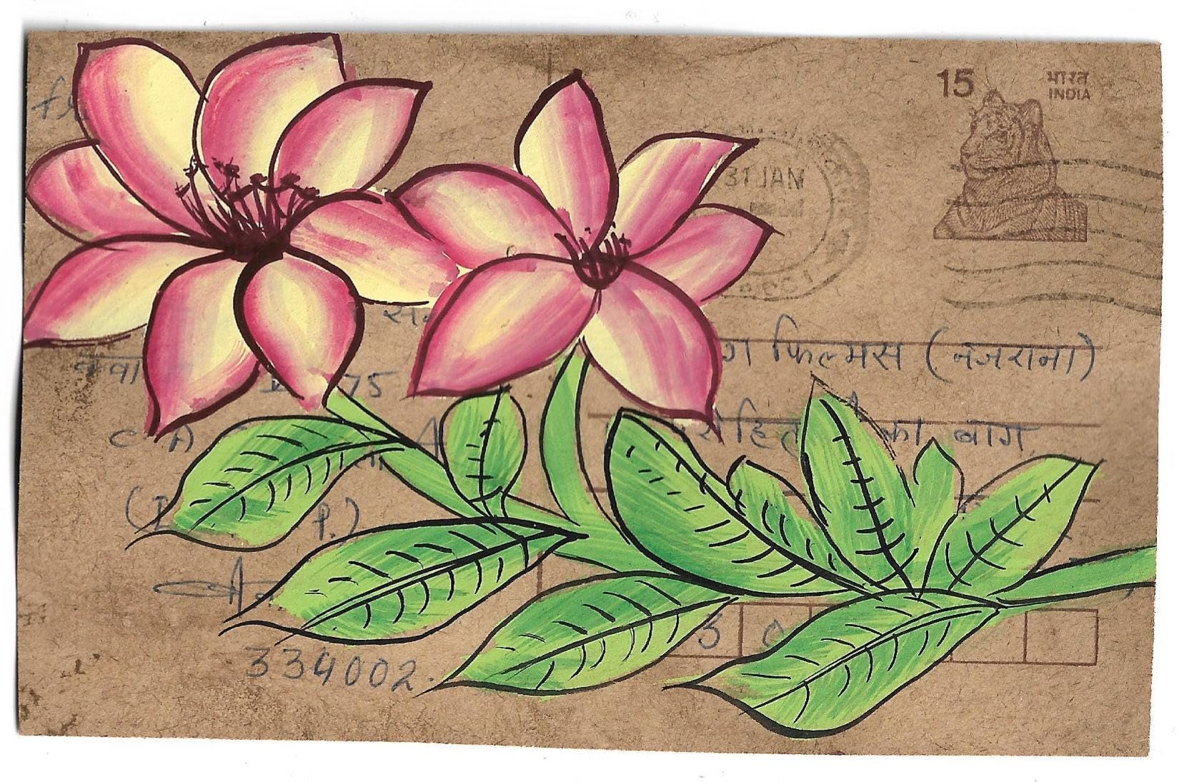 INSAIN - Beautiful Flowers Paintings on Vintage Indian Postcard Front | Flower 1