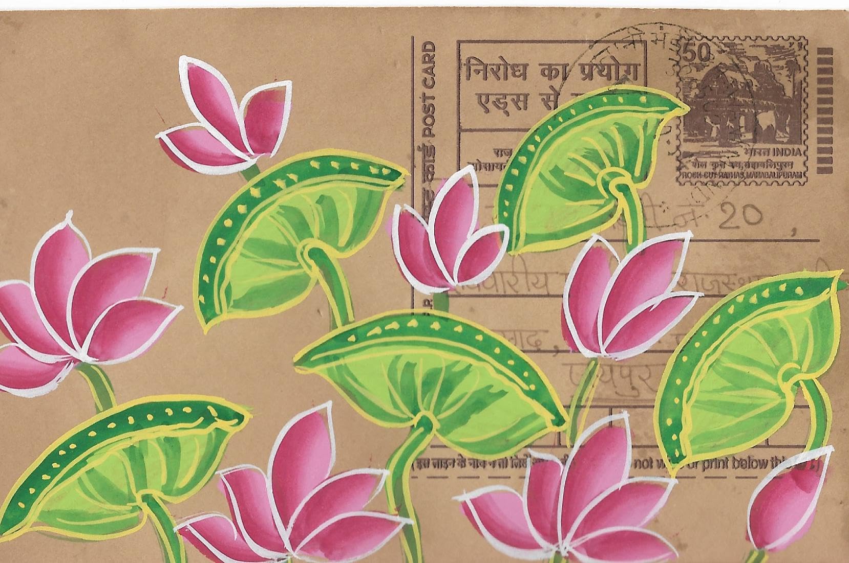INSAIN - Beautiful Flowers Paintings on Vintage Indian Postcard Front | Flower 2