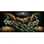 This painting captures the magic of the night with two elegant peacocks perched on a branch, their colorful plumage beautifully detailed and illuminated by a full moon. The serene scene is accentuated by birds flying across the night sky and stylized golden-hued trees, creating a mystical atmosphere. The intricate details and vibrant colors make the painting a visual delight. Features: Handmade painting on high-quality velvet Detailed depiction of a serene mountain retreat Vibrant colors and intricate details on a rich, textured backdrop Ideal for nature-themed and wildlife-inspired spaces Unique blend of traditional art and wildlife elements Dimensions: Height: 60 cm Width: 122cm Materials: Velvet fabric Natural pigments Traditional painting tools Care Instructions: To maintain the beauty and integrity of this velvet painting, avoid exposure to direct sunlight and moisture. Handle with care and clean gently with a soft, dry cloth. Bring home this beautiful piece of wildlife art and let the majestic presence of the Horse family enrich your living space. This handcrafted velvet painting is a testament to traditional Indian artistry and the awe-inspiring beauty of nature, making it a cherished addition to your collection.