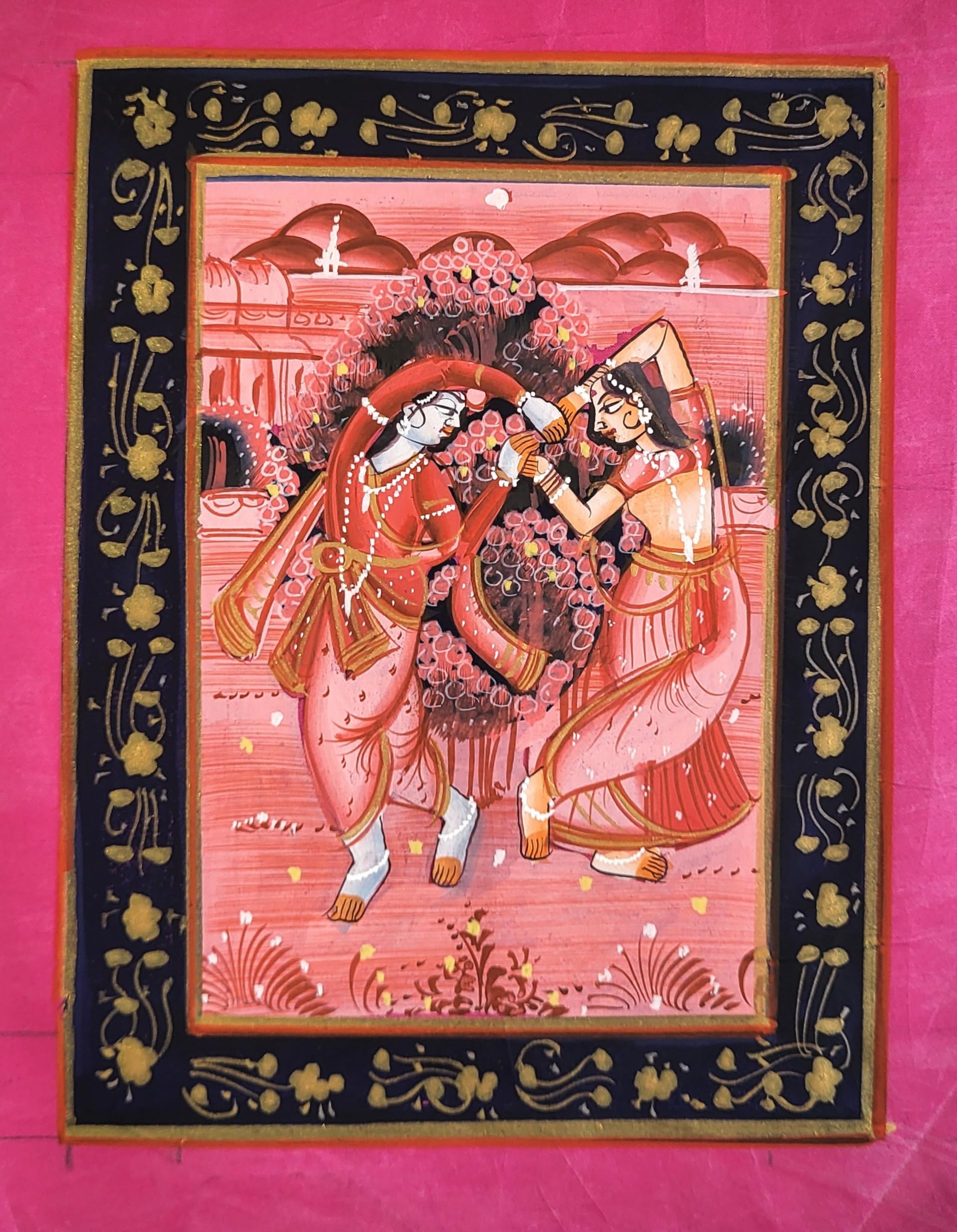 INSAIN Eternal Dance of Love - Radha Krishna Ras Leela Painting-Fabric Painting- Lord Krishna Painting (9 * 6.5 inch)(Unframed) (Art 2)