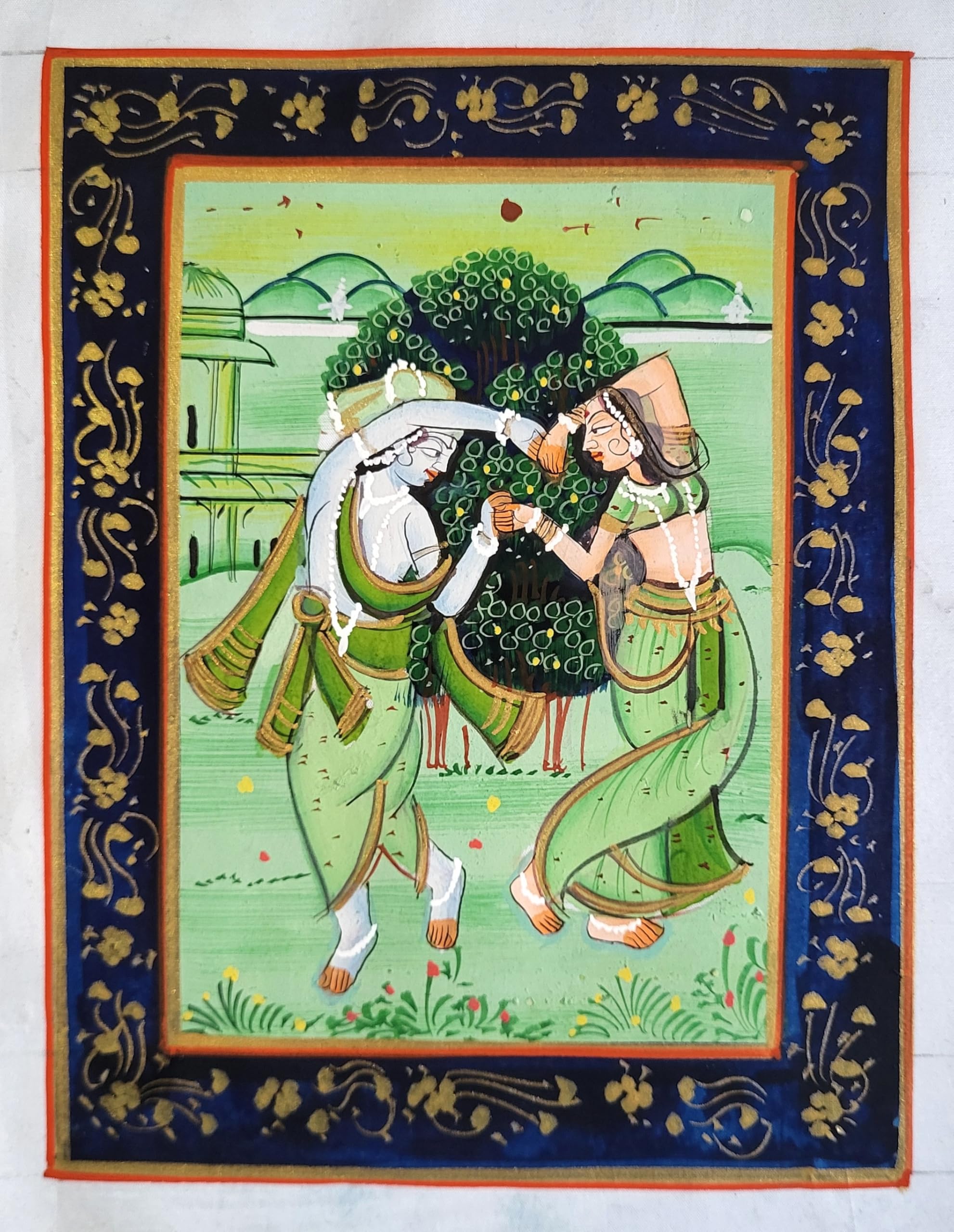 INSAIN Eternal Dance of Love - Radha Krishna Ras Leela Painting-Fabric Painting- Lord Krishna Painting (9 * 6.5 inch)(Unframed) (Art 6)