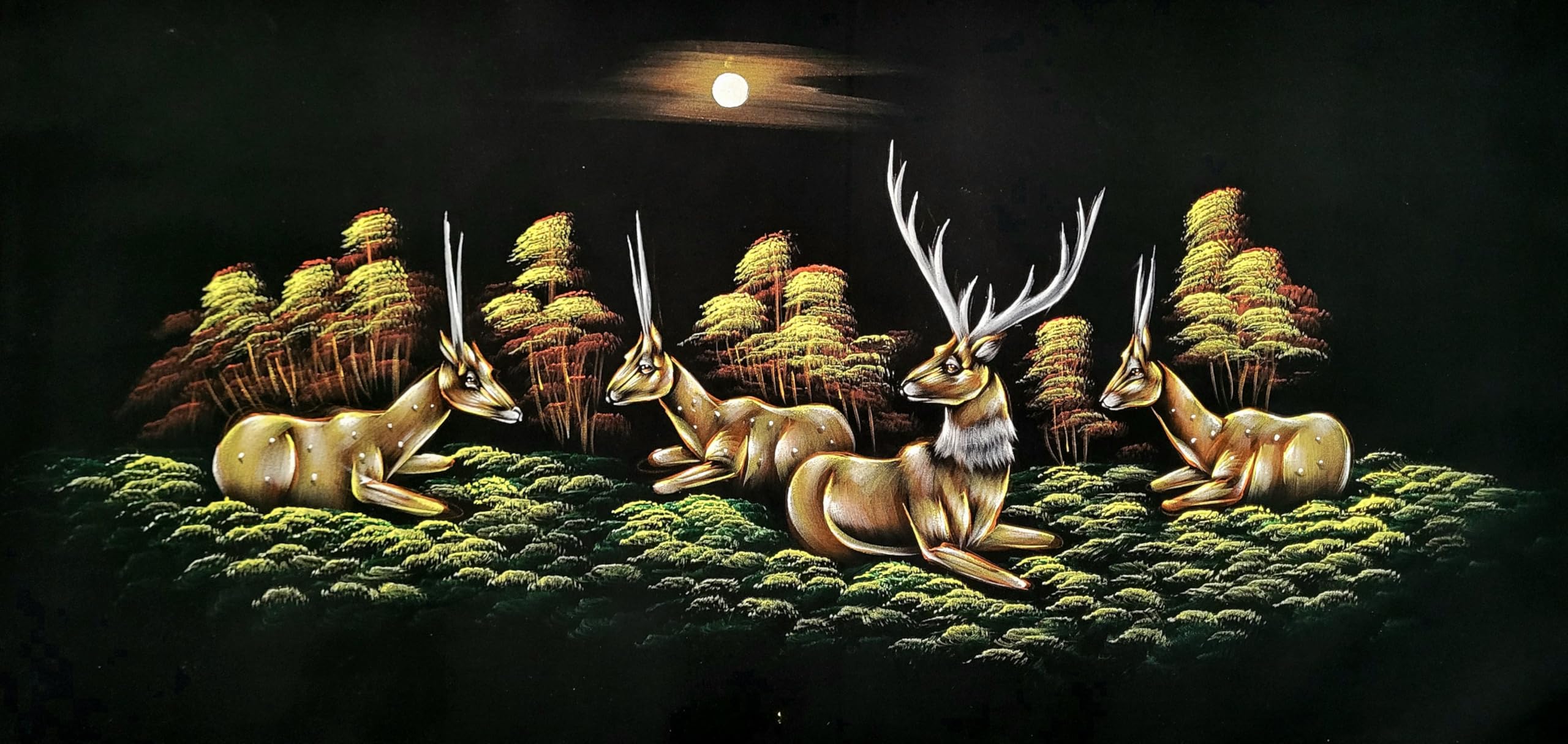 INSAIN Gazelles Deer by Moonlit River Velvet Painting (122x60 cm) | Fabric Painting | Big Wall Art | Home Decor (2)