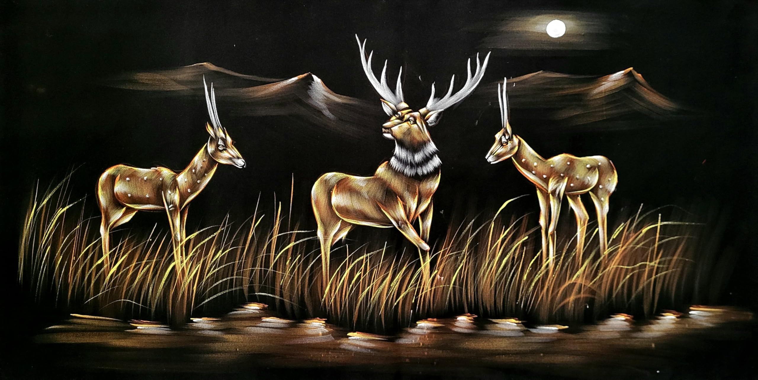 INSAIN Gazelles Deer by Moonlit River Velvet Painting (122x60 cm) | Fabric Painting | Big Wall Art | Home Decor (8)