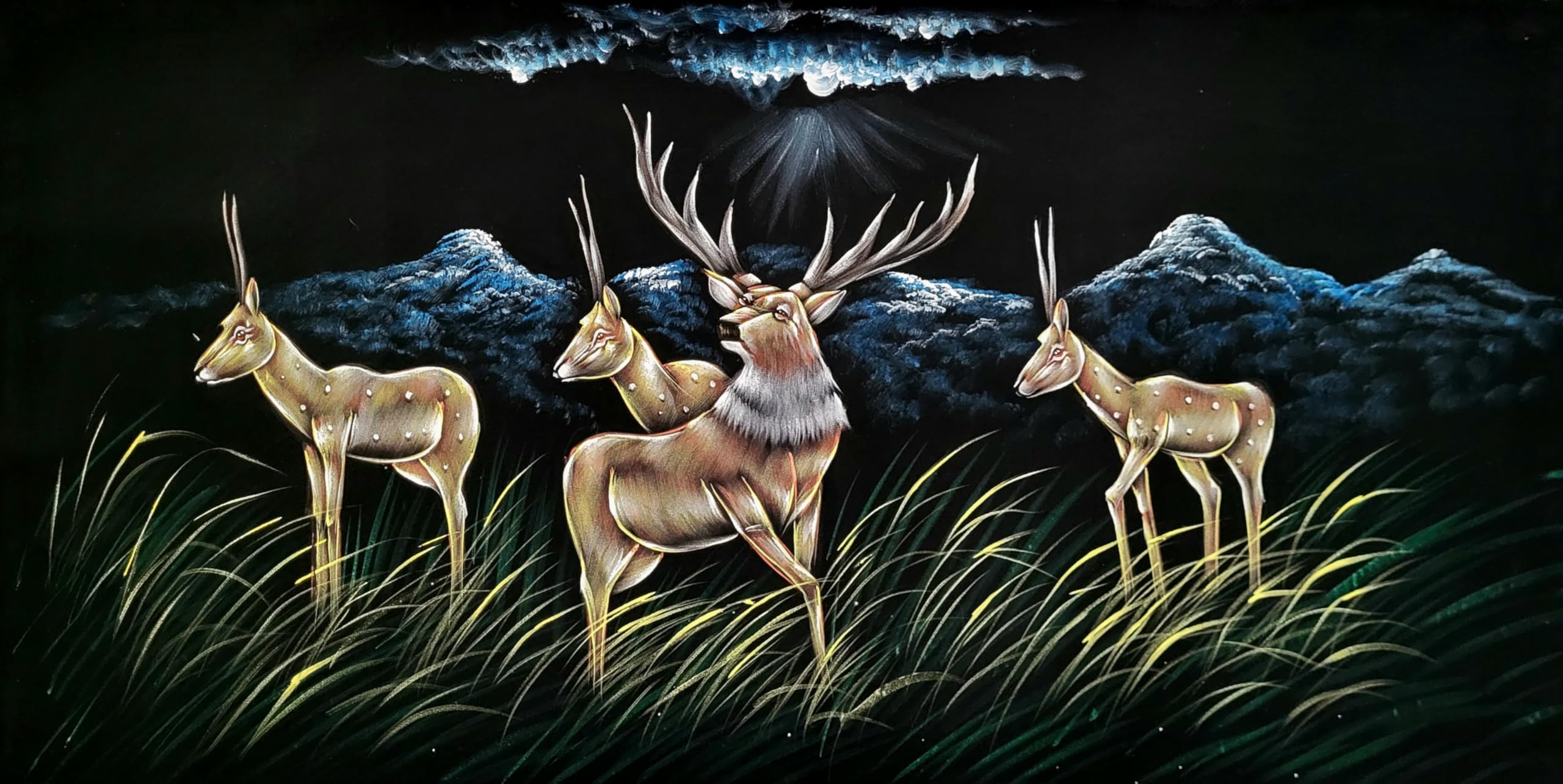 INSAIN Gazelles Deer by Moonlit River Velvet Painting (122x60 cm) | Fabric Painting | Big Wall Art | Home Decor (9)