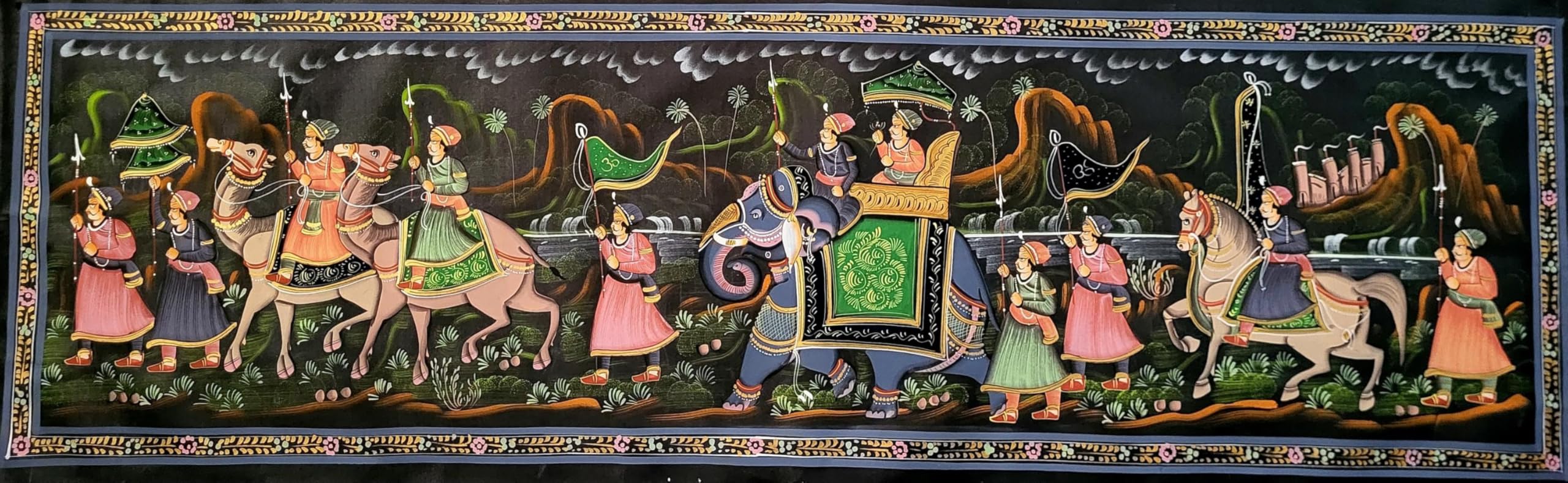 INSAIN Handmade Polyester Painting of Royal Procession| Fabric Painting | Big Wall Art | Home Decor (150x36 cm)