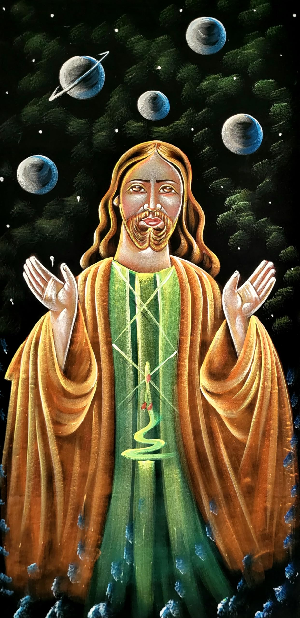 This unique handmade velvet painting depicts a serene image of Jesus Christ with three crosses in the background, symbolizing his crucifixion and resurrection. The artwork, measuring 60x122 cm, features vibrant colors and intricate details that capture the essence of this sacred scene. Painted on luxurious velvet, this piece offers a rich texture and depth, making it perfect for adding a spiritual touch to your home, church, or prayer room. Whether you're a collector of religious art or looking for a meaningful gift, this painting is sure to inspire and uplift.