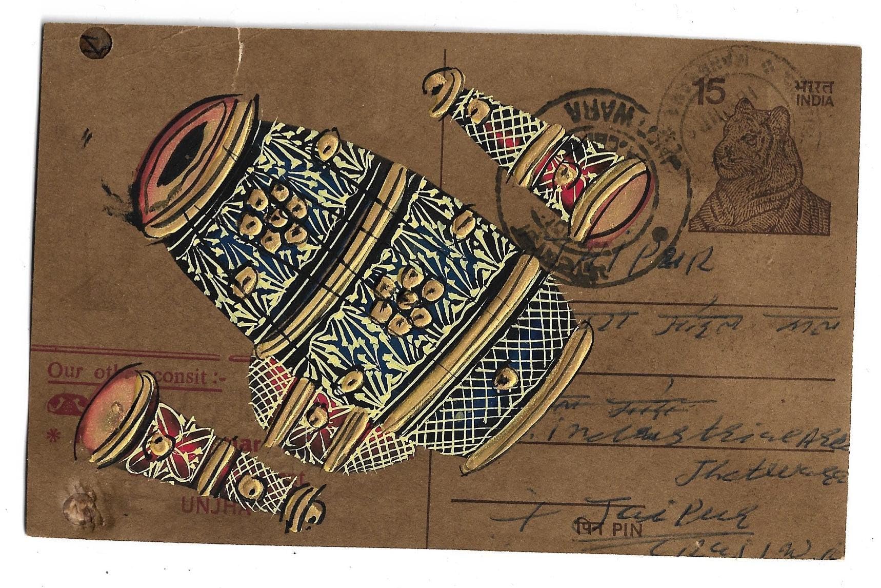 INSAIN - Indian Musical Instruments Paintings on Vintage Indian Postcard Front | Dholak 2