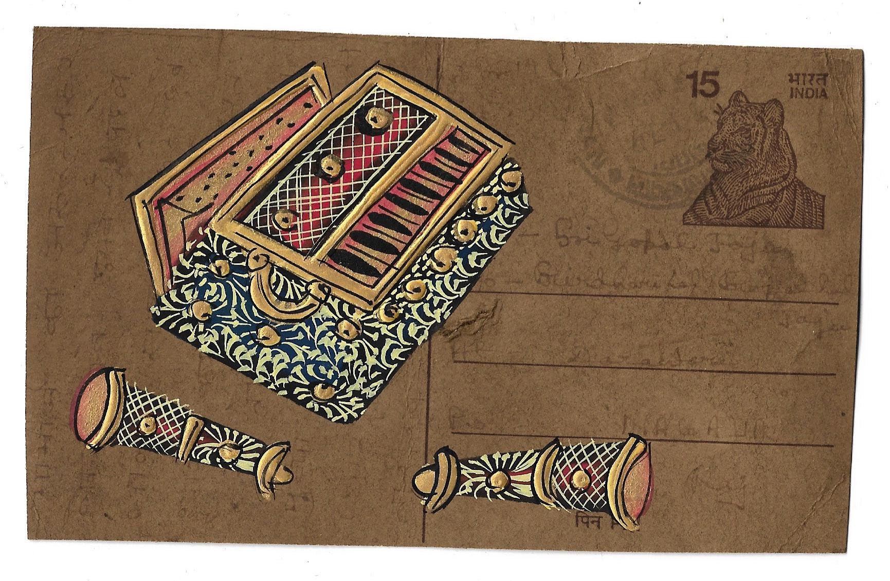 INSAIN - Indian Musical Instruments Paintings on Vintage Indian Postcard Front | Harmonium