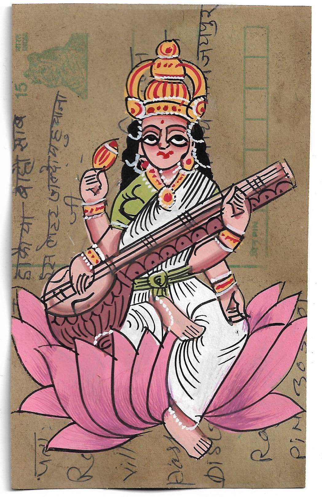 INSAIN - Indian Mythology Gods Paintings on Vintage Postcard Front | Devi Saraswai