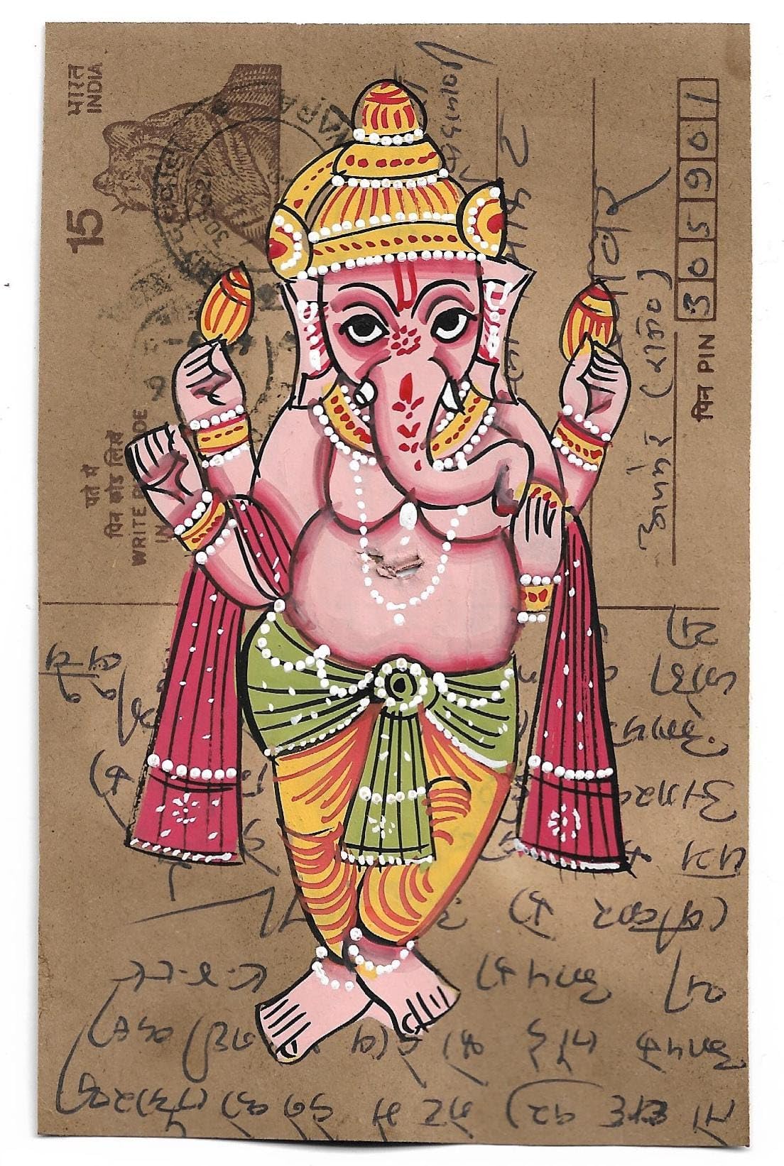 INSAIN - Lord Ganesha Paintings on Vintage Postcard Front | Ganesha 5