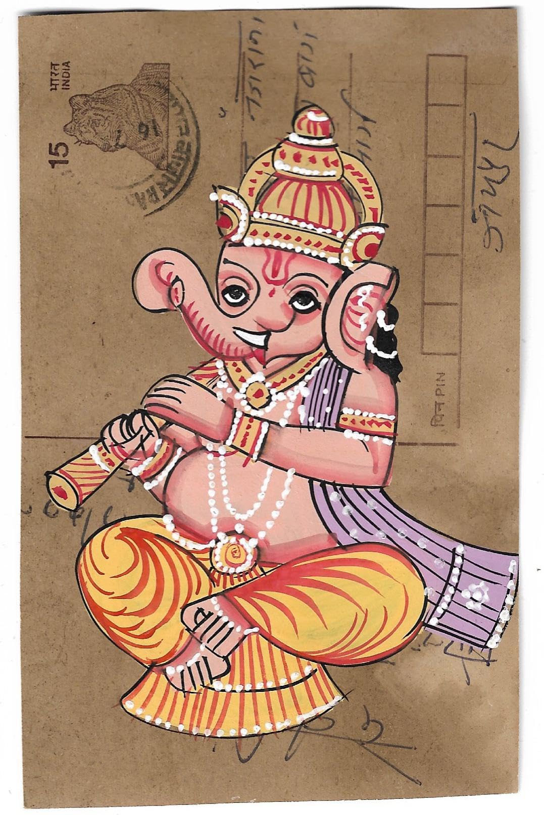 Lord Ganesha Paintings on Vintage Postcard Front Note- It is just the Front of Postcard, not an actual postcard