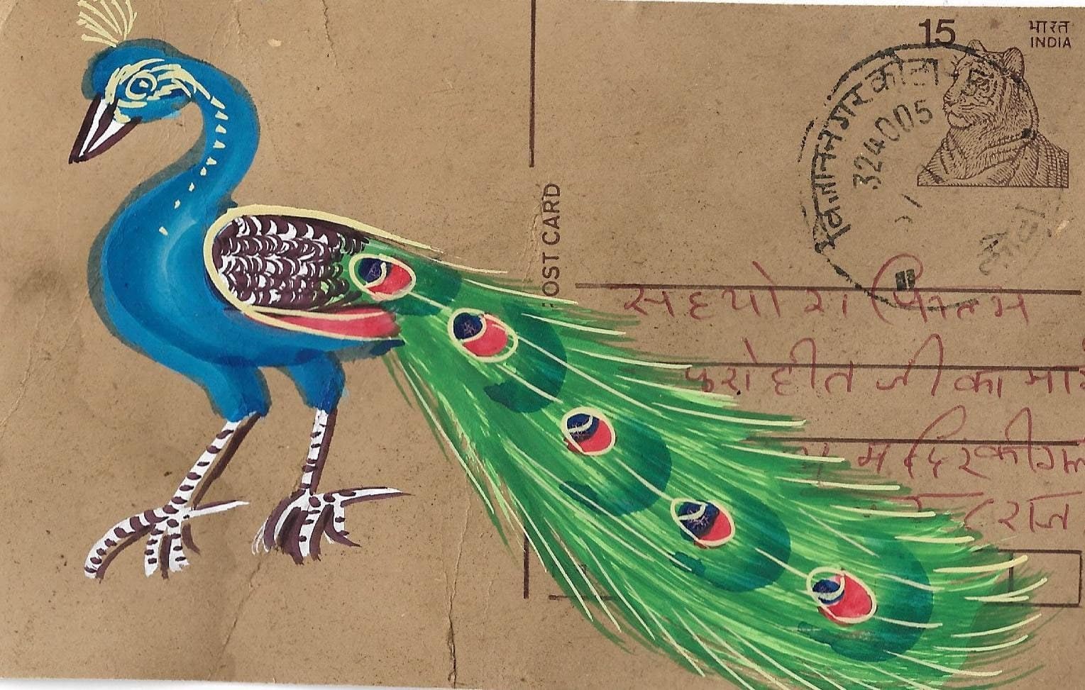 INSAIN - Peacock Painting on Vintage Postcard Front | Peacock 1