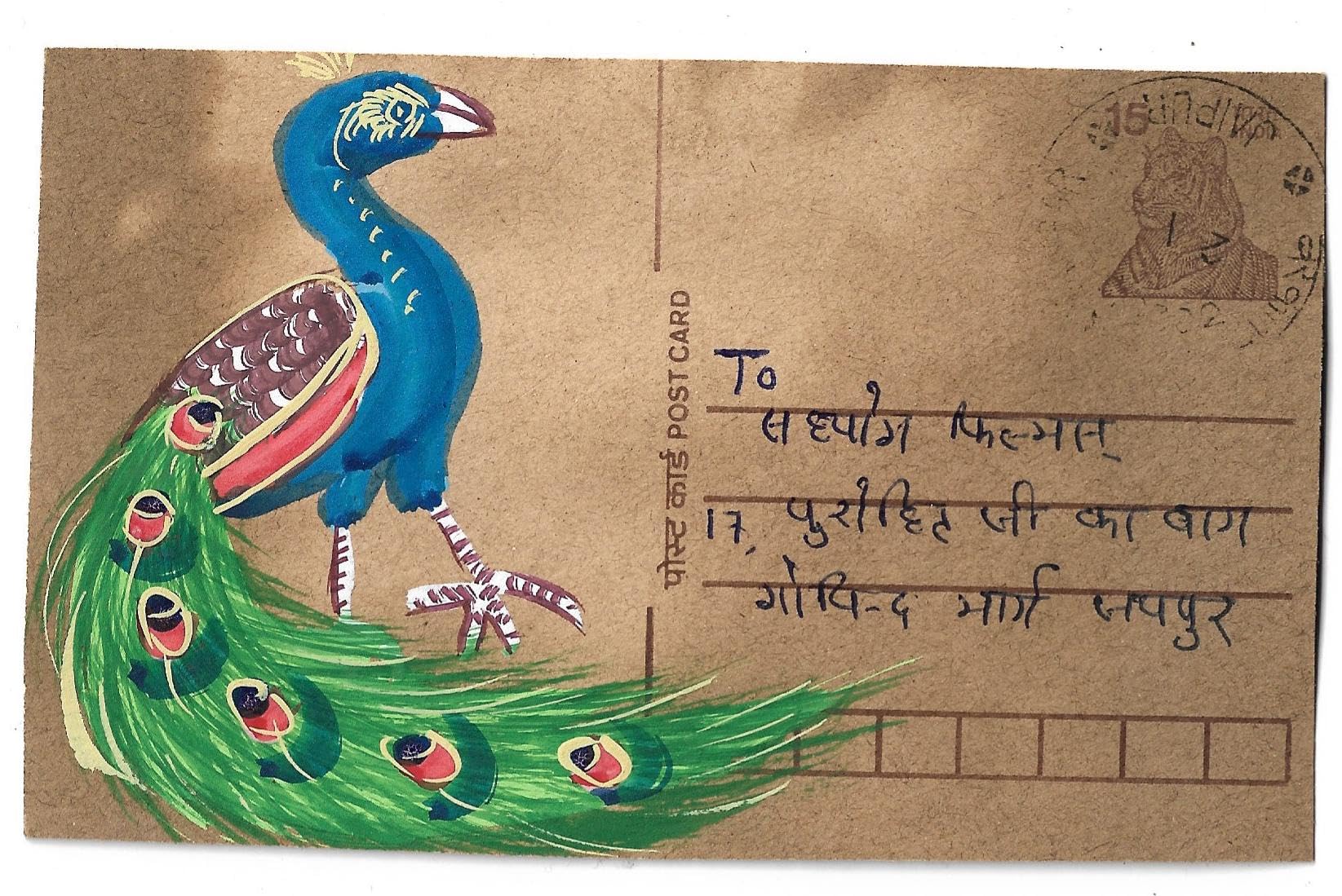 INSAIN - Peacock Painting on Vintage Postcard Front | Peacock 3