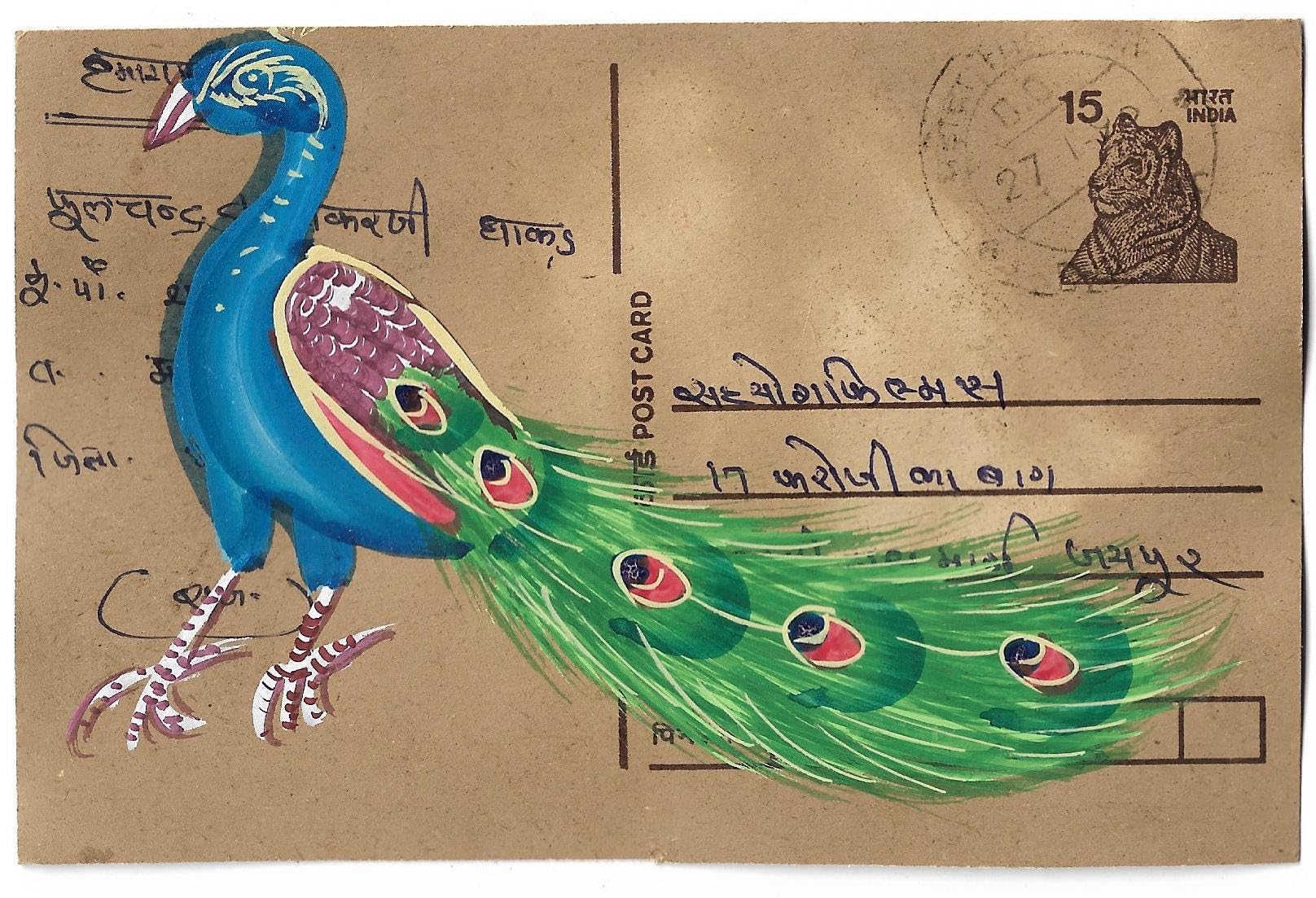 INSAIN - Peacock Painting on Vintage Postcard Front | Peacock 4