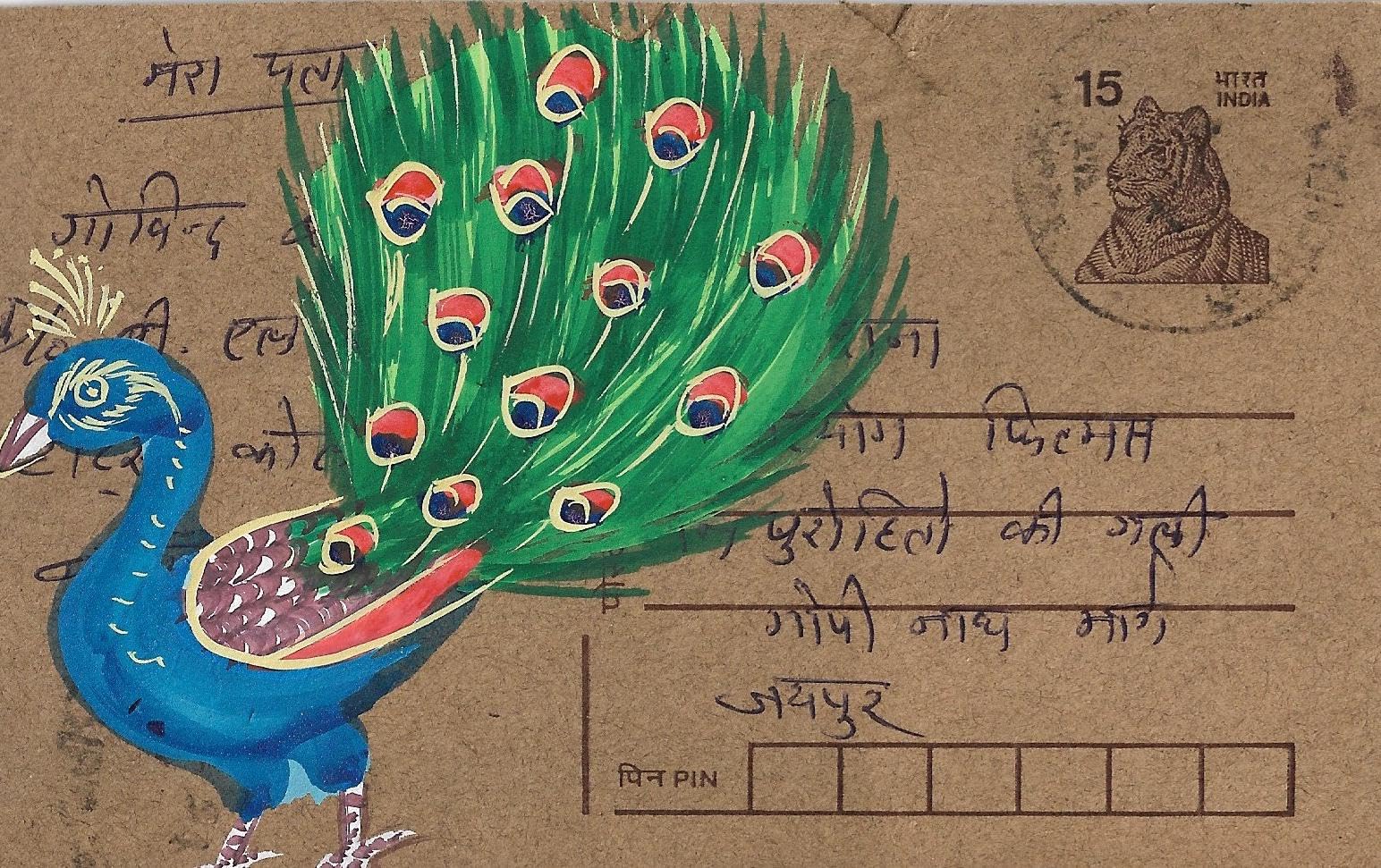 INSAIN - Peacock Painting on Vintage Postcard Front | Peacock 5