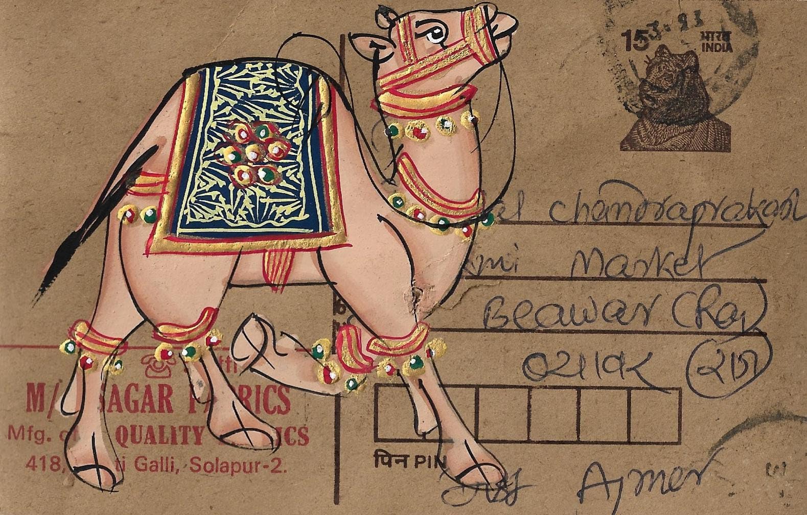 INSAIN - Royal Camels Paintings on Vintage Indian Postcard Front | Camel 3