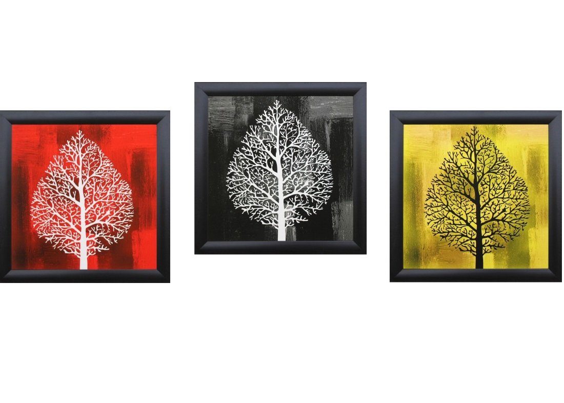 • Set of 3 Abstract Design Satin Matt Textured Framed UV Art Painting