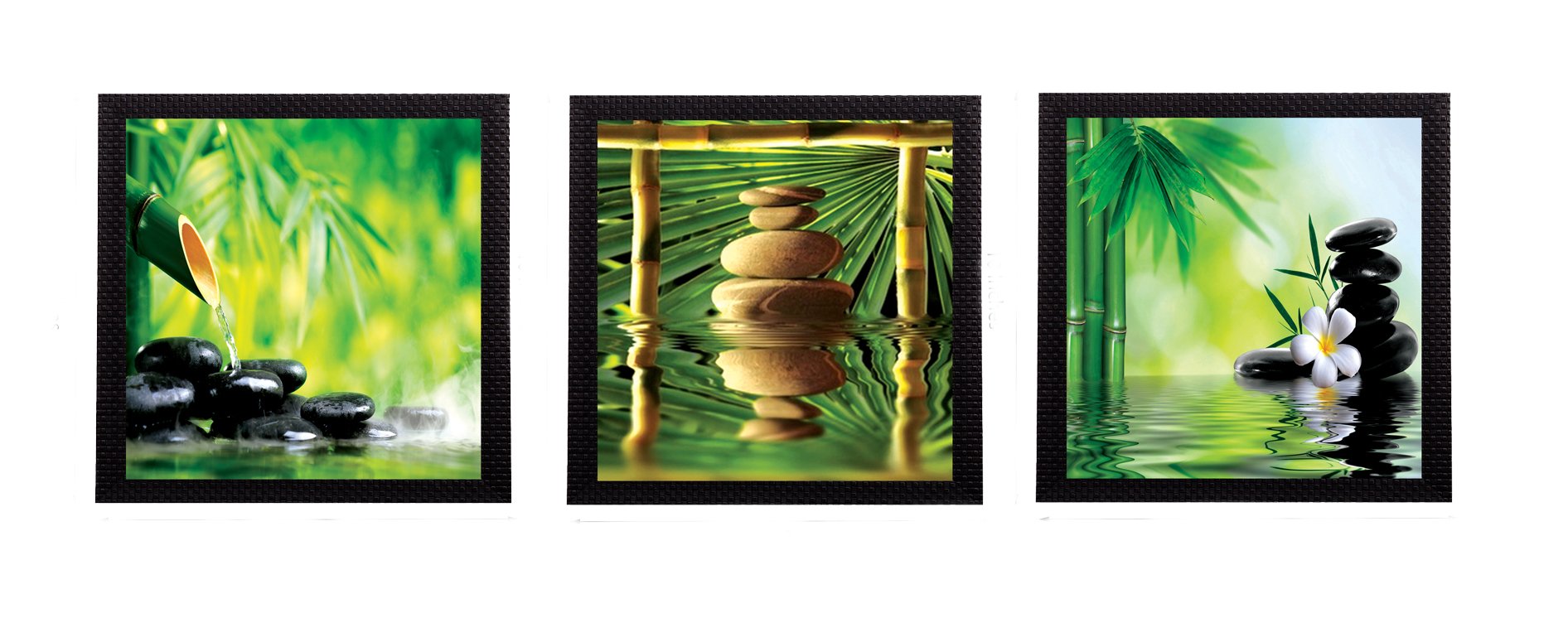 JAIPUR STONE WORK 'Stones and Owner' UV Art Painting (Synthetic Wood 76 cm x 25 cm Set of 3 Satin Matt Texture C3FPB1148)
