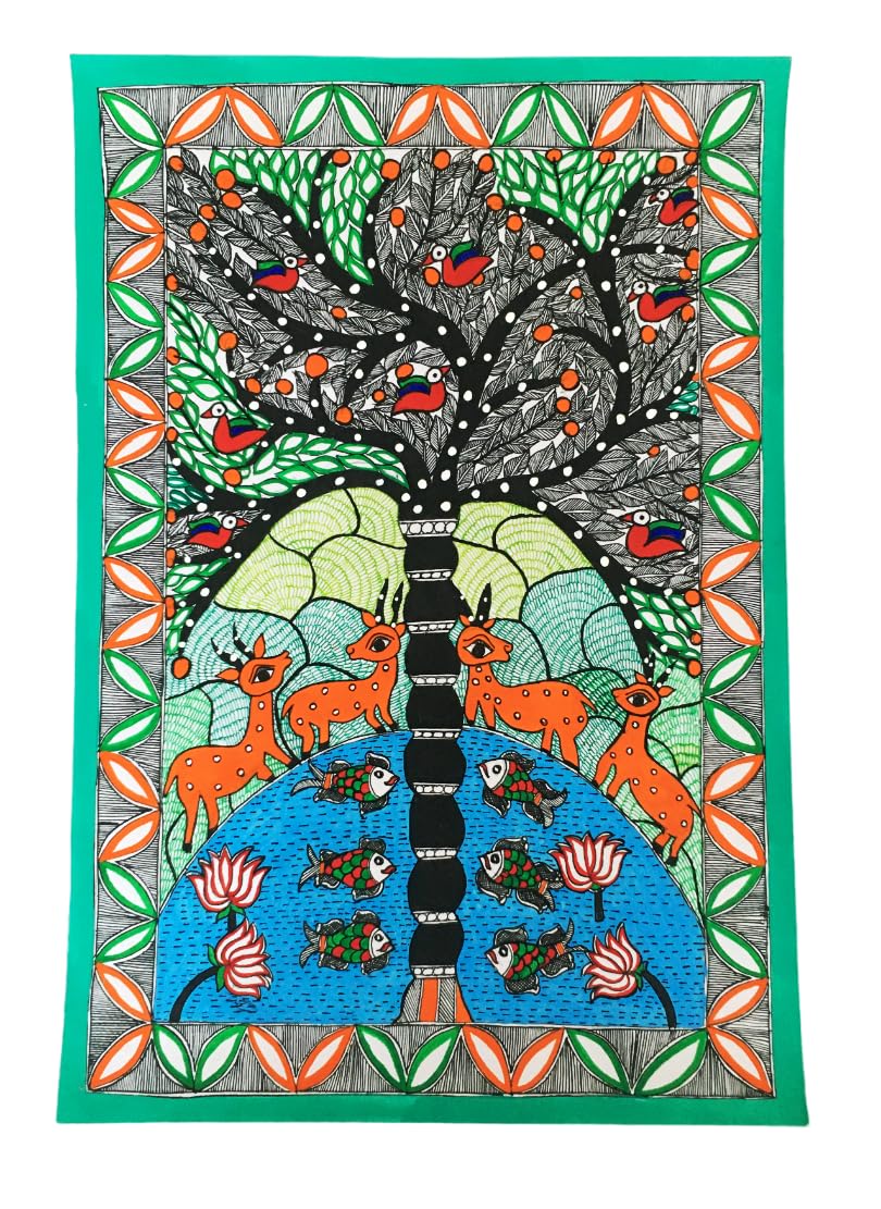 MADHUBANI PAINTINGS Beautiful handmade madhubani/mithila painting for living room/bed room/home decor nature (22 X 15 INCH)-UNFRAMED