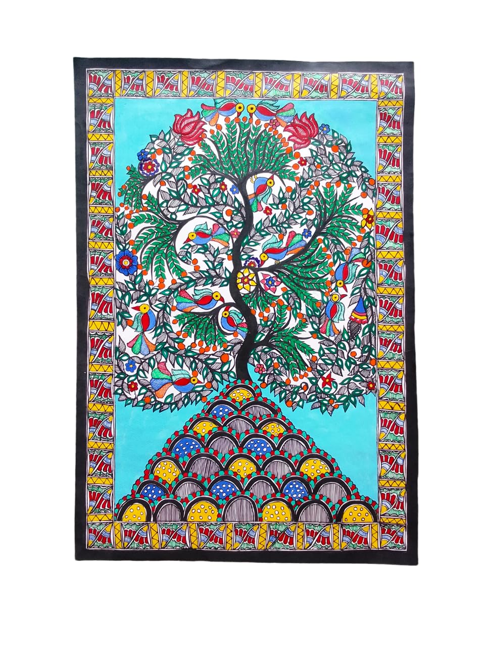 MADHUBANI PAINTINGS BEAUTIFUL MITHILA PAINTING MADHUBANI PAINTING BIRDS & TREE (22 X 15 INCH)-UNFRAMED