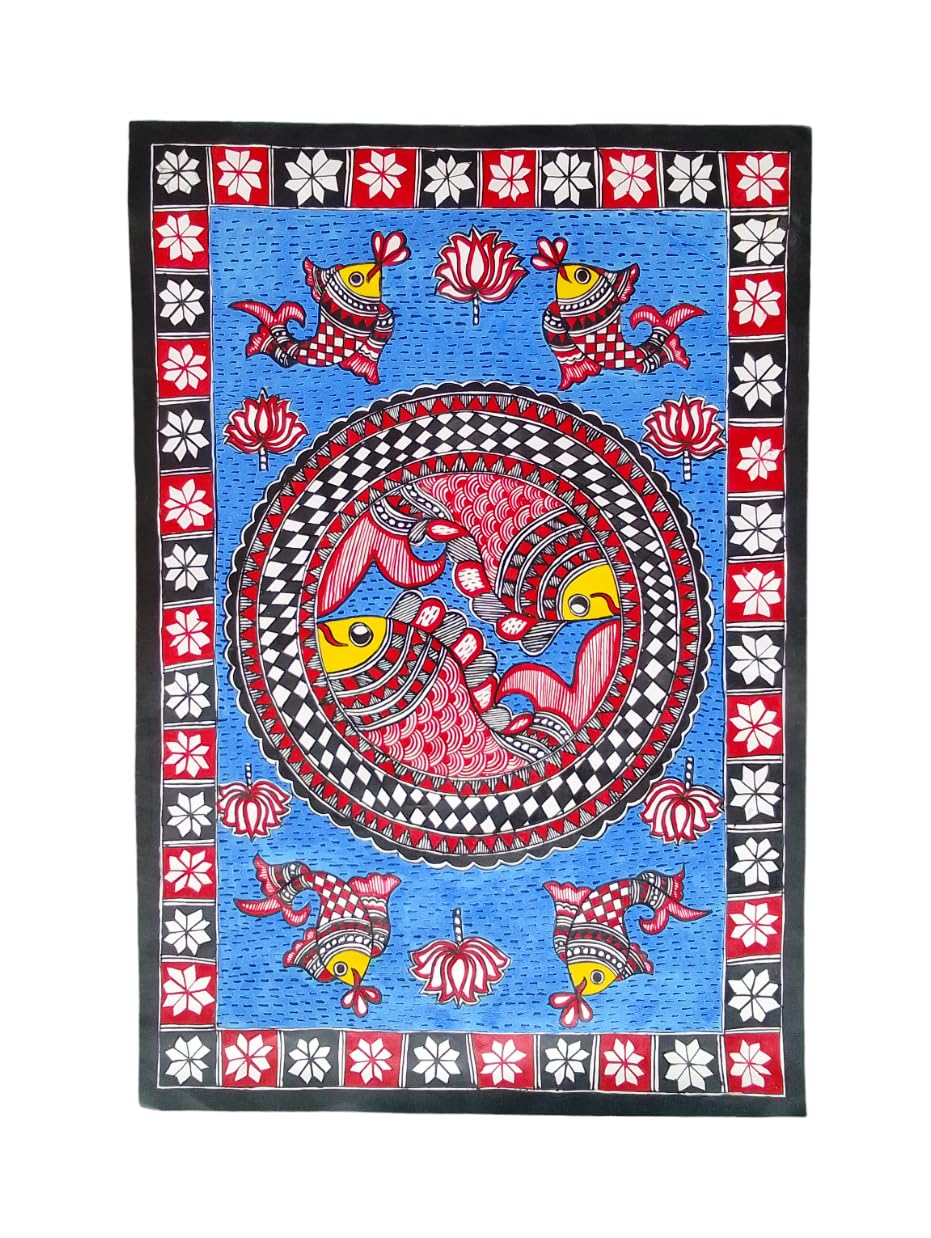 MADHUBANI PAINTINGS BEAUTIFUL MITHILA PAINTING MADHUBANI PAINTING FISH (22 X 15 INCH)-UNFRAMED