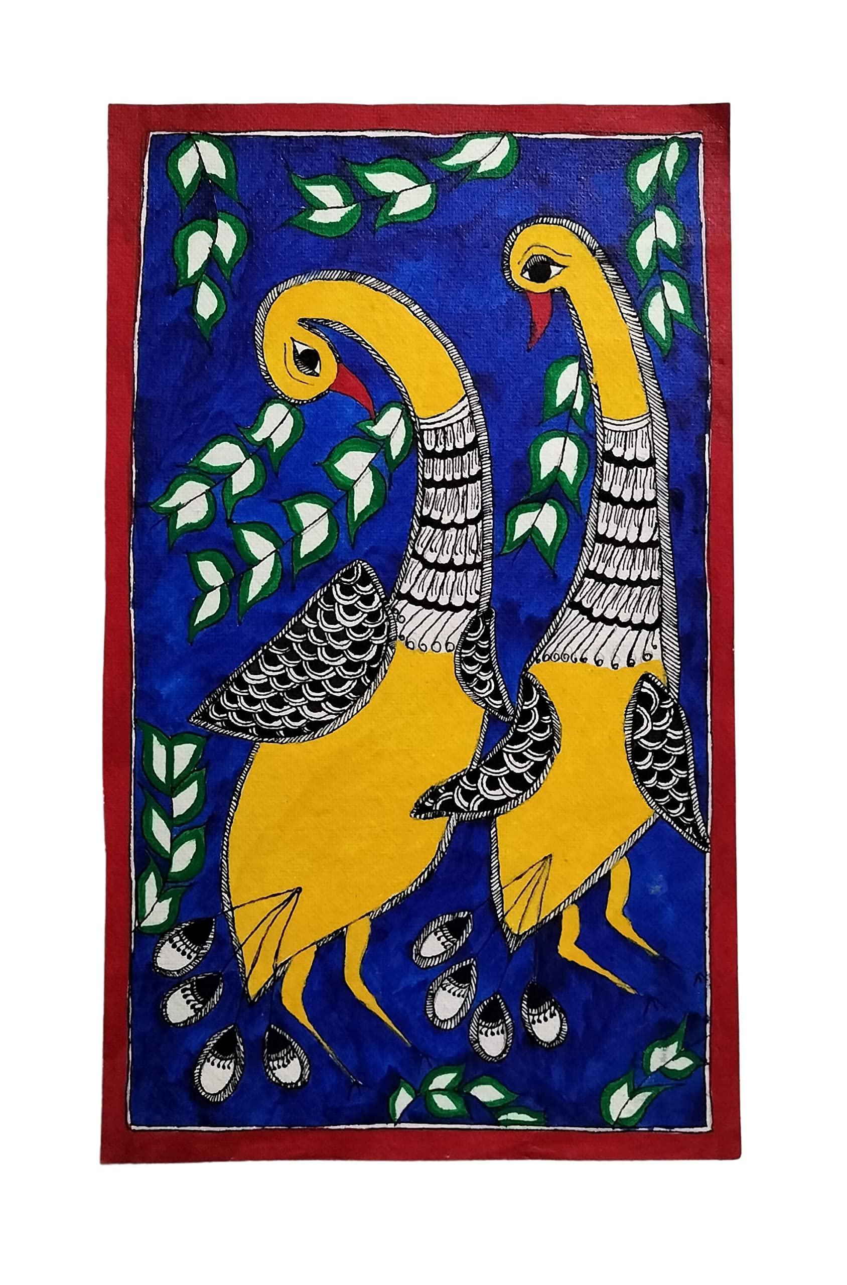 MADHUBANI PAINTINGS MADHUBANI PAINTING MITHILA PAINTING OF SWAN-HANDMADE-(15.5 X 9.5 INCH)-UNFRAMED