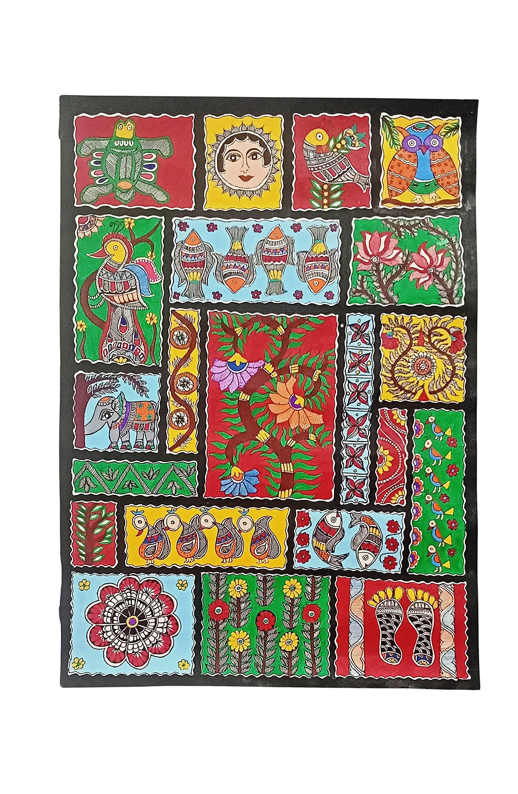 MADHUBANI PAINTINGS MITHILA PAINTING/MADHUBANI OF NATURE- FULLY HANDMADE (22 X 15.5)-UNFRAMED