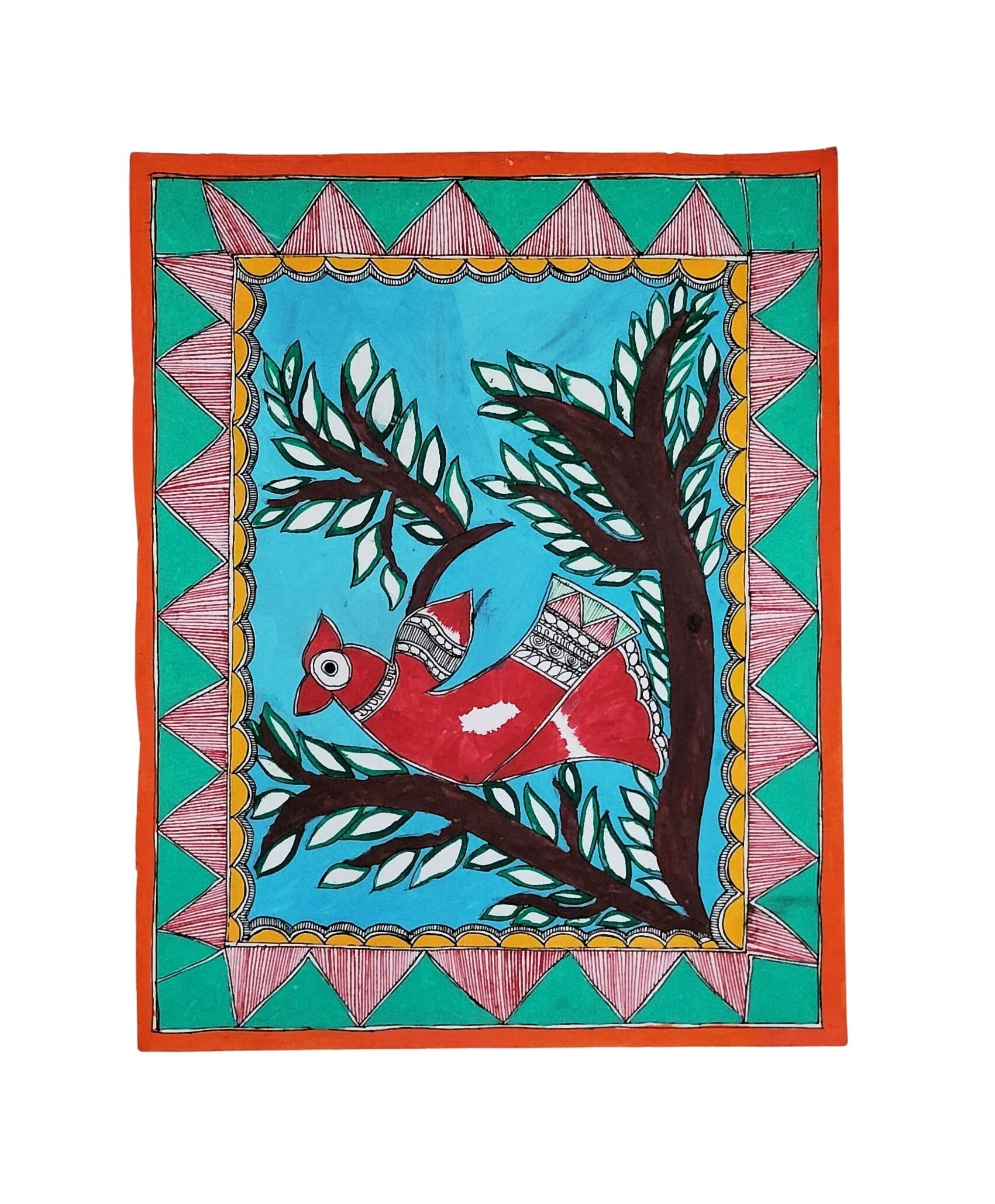 MADHUBANI PAINTINGS MITHILA PAINTING MADHUBANI PAINTING OF BIRD-HANDMADE-(11X14 INCH)-UNFRAMED