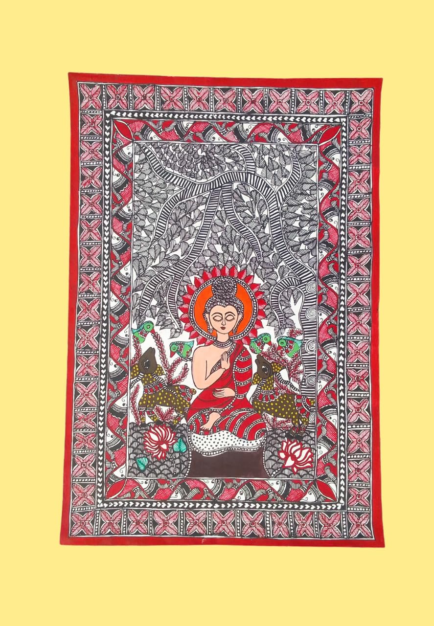 MADHUBANI PAINTINGS MITHILA PAINTING MADHUBANI PAINTINGOF BUDDHA (22 X15 INCH)-UNFRAMED