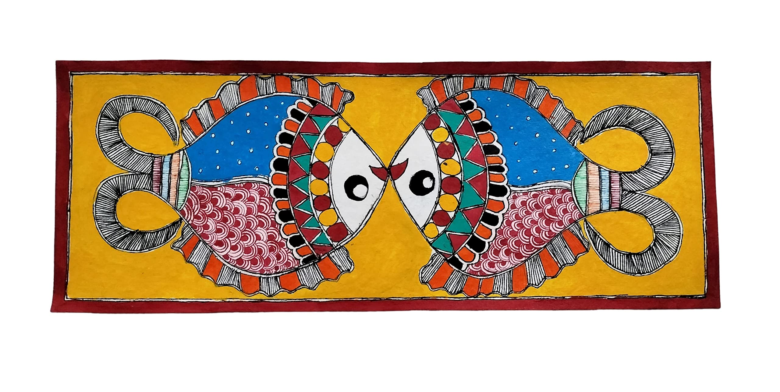 MADHUBANI PAINTINGS MITHILA PAINTING/MADHUBANI PAINTING OF FISH- FULLY HANDMADE (16X 6 INCH)-UNFRAMED