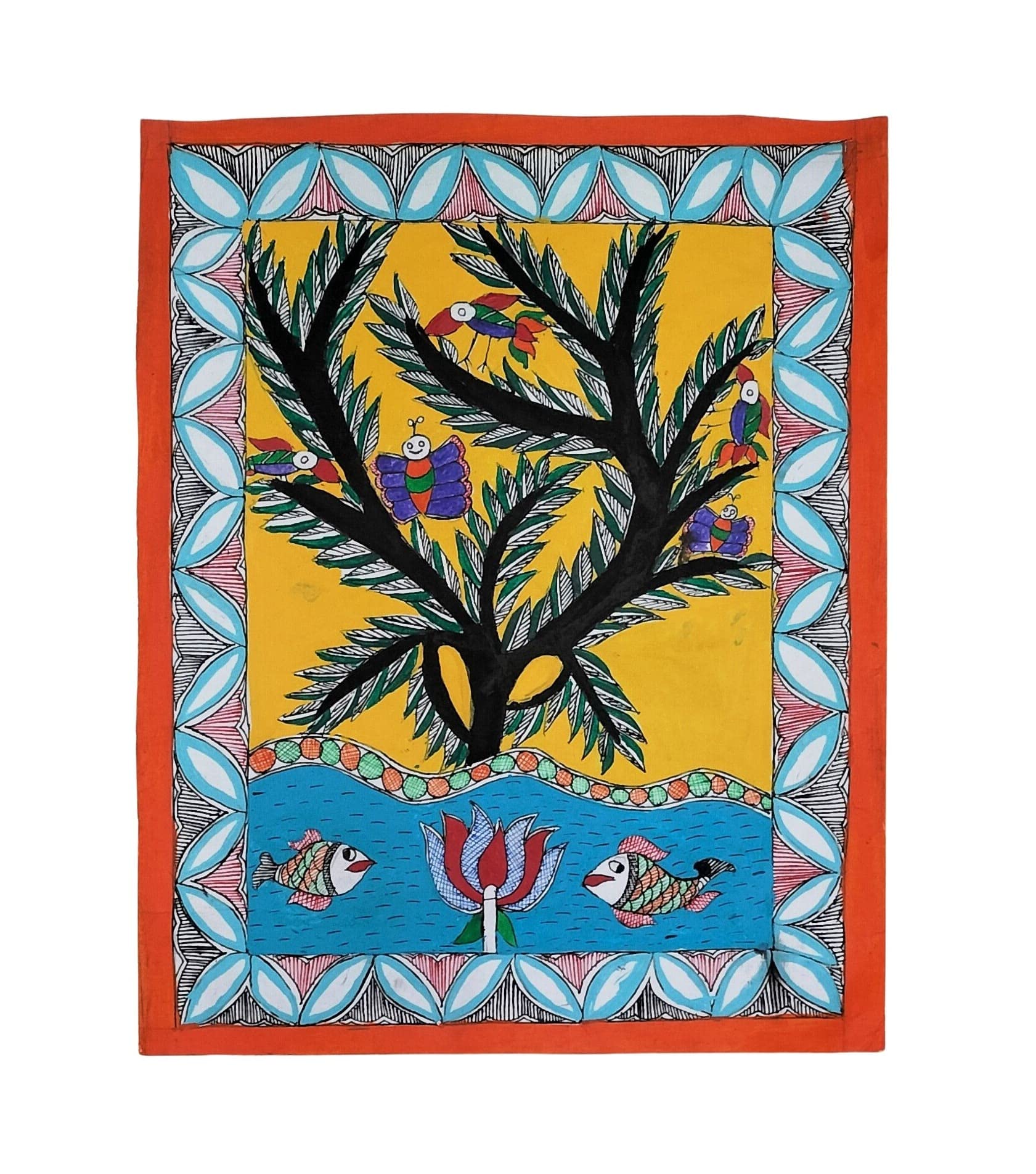 MADHUBANI PAINTINGS MITHILA PAINTING MADHUBANI PAINTING OF TREE & BIRDS (14X11 INCH)-HANDMADE-UNFRAMED