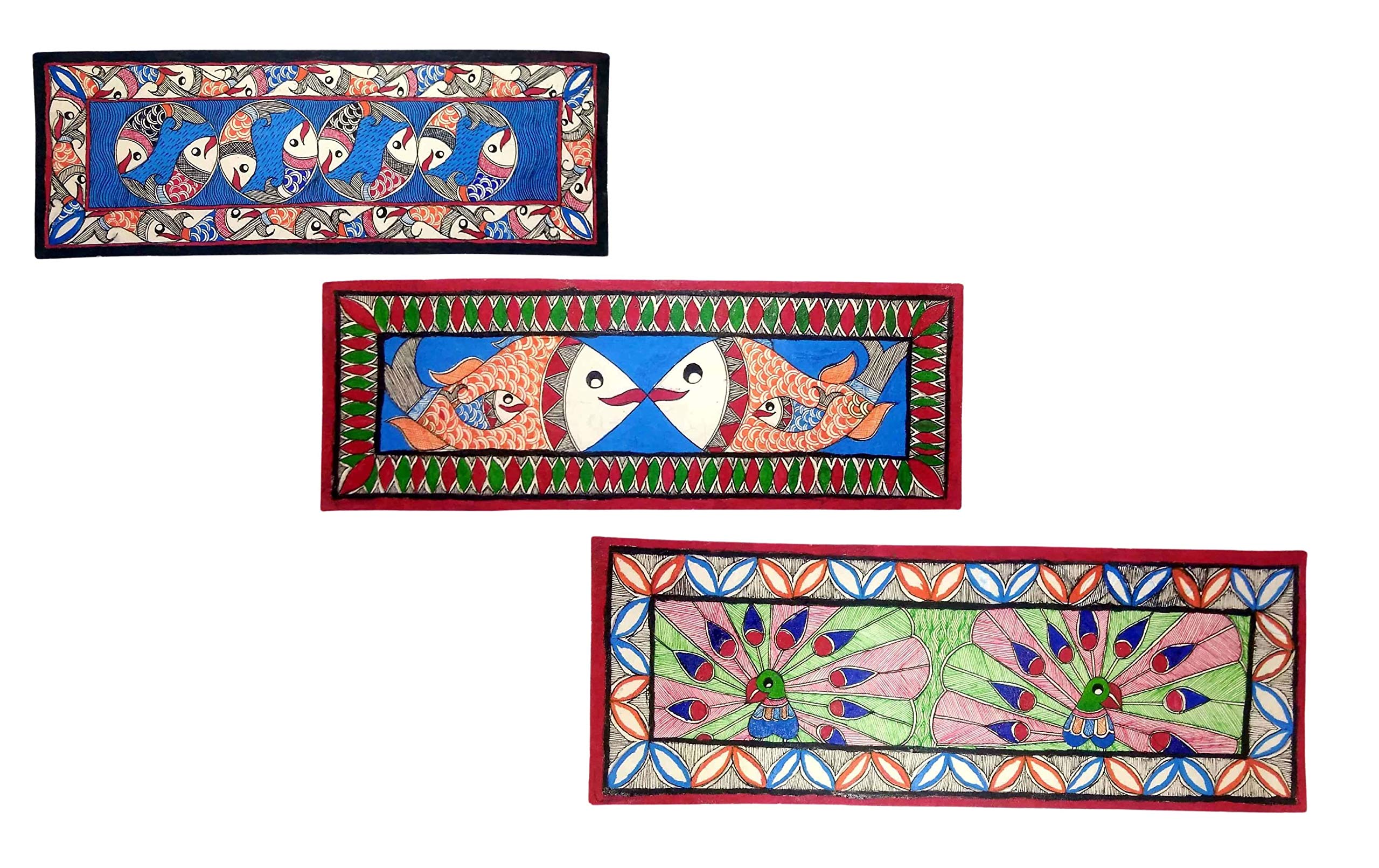 MADHUBANI PAINTINGS MITHILA PAINTINGS/ MADHUBANI PAINTINGS- FULLHANDE- TRADITIONAL PAINTINGS-FOR OFFICE/ HOME/ KITCHEN/ GIFTING / DRAWING ROOM-PACK OF 3 PAINTINGS (UNFRAMED)