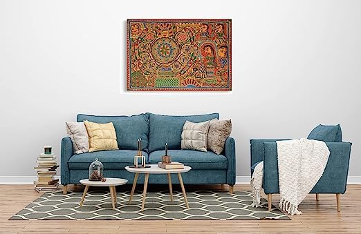 MADHUBANI PAINTINGS Vintage Fabric Auspicious Marriage Madhubani Painting Multicolour 24 Inch x 16 Inch