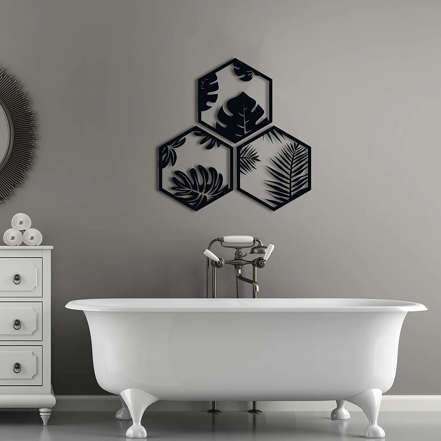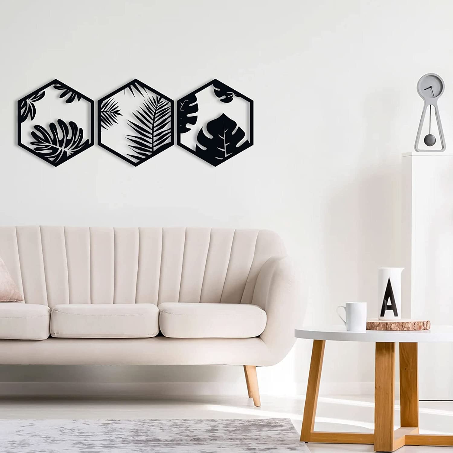 • Package Contain: 3 Pcs of hexagon shape wall art , Size: 10 Inches each hexagon , Material: Solid Wood.