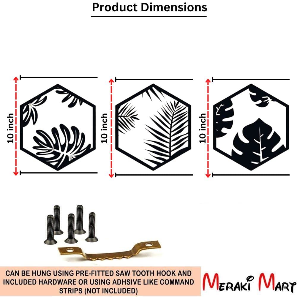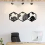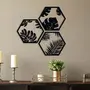 Meraki Mart Wood Hexagon shape black designed wall art wall hanging decor plaque sculptures black wall decoration contemporary home, living room, office, bedroom and garden - 3 Pcs, 10 Inches