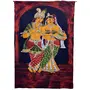 PAPIER MACHE MASK OF GODS Batik Painting - Lord Krishna Playing Flute with Radha (L 35.5 x H 55 inches). Unframed Wall Hanging