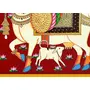 Pichwai is one of the most spectacular ancient & traditional forms of art which originated in the villages of Nathdwara in the state of Rajasthan India. This 400-year-old art form generally depicts and narrates the tales of Lord Krishna's life. The Sanskrit word "Pichh" means back and "wais" means hanging so Pichwais are paintings or hangings which form the backdrop behind the main deity of Krishna temples. The making of a traditional pichwai painting takes a considerable amount of time ranging from a couple of weeks to months.