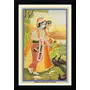 PICHWAI- PAINTED TEMPLE HANGING Radha & Krishna in Vrindavan Pichwai Painting Framed Size 13.5X19.5 Inches
