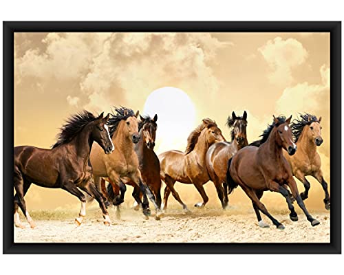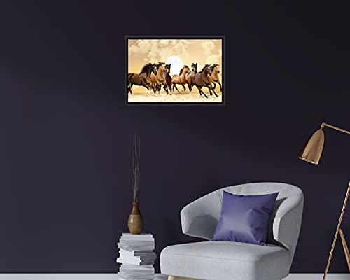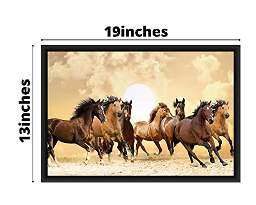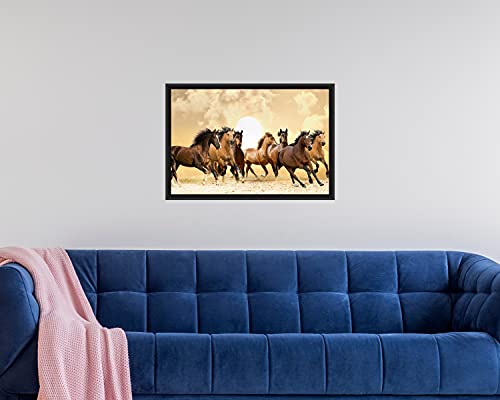 Poylaamo Seven Running Horses Framed Wall Painting for Living Room Bedroom and Vastu (Light Brown L)