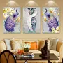 Rangoli 3D Print Peacock MDF Framed Painting for Home Decoration (3D Unique 12 inch x 18 inchEach Frame Size Set of 3) Water Proof Wall Hanging
