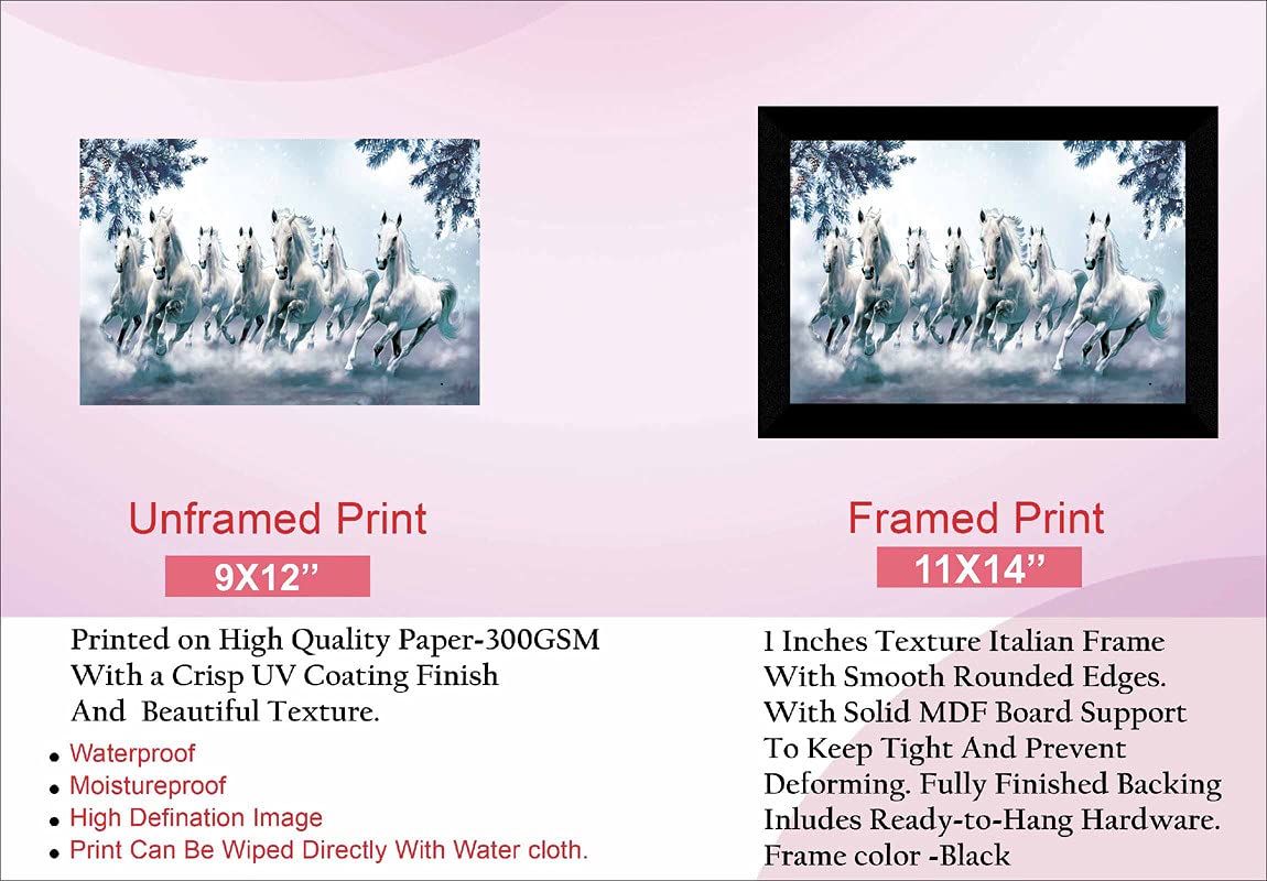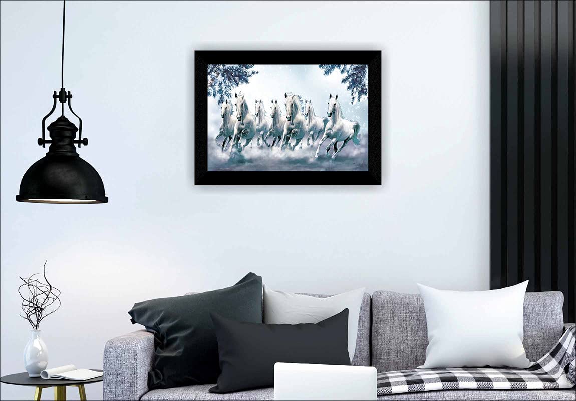 SAF paintings UV Textured 7 Running Horses Vastu Framed Painting (11 inch X 14 inch) SANFKH39 SANFKH39
