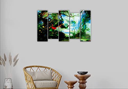 Uv multi effect paintings has pasted on a base of 6mm mdf with double side foam tape. After a long research and development we come up with this mdf panel paintings. It is long lasting and unbreakable. You can add a good set of lights to the place where the painting is which will give a fantastic sparkle look and the decor will give a different feel and look to the place. Quality and durability: The painting has a uv finish and includes a good quality mdf on which painting is pasted with a dimension of 5 panels is 45 cm x 106 cm. However it does not include glass.