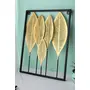 Urban Hamlet Decorative Etched Wall Frame | Decorative Mounted Art Sculpture for Home Decor/Living Room/Bed Room (Size :- 16X0.5X21 in) | (5 Big Size Golden Leaves with Frame)