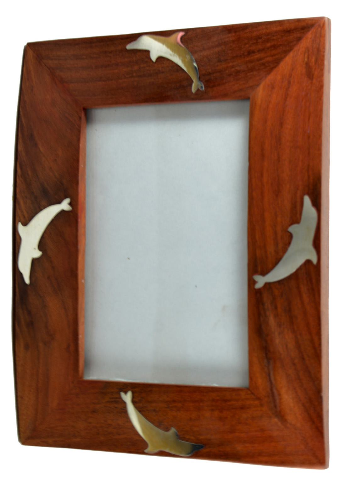 A well clicked picture is worth a thousand words and deserves to be showcased in a well crafted frame. This wooden frame with inlayed dolphin motif will add a unique dimension to the treasured moments. Created by the artisans from Uttar Pradesh, India.