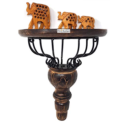 Desi Karigar is a professionally managed company which deals in all kinds of Wooden & Iron furniture Handicrafts & Gift Items Home furnishing Products. Life style is consistent in the customer satisfaction as well as enables their clients to maximize their profit by providing them with high quality and craftsmanship on time delivery and competitive price. They strive to cater to the requirements of worldwide client base with utmost professionalism. Material: Wood and Iron Wall Shelf to keep a beautiful figurine or showpiece Dimensions (lxbxh) In 25.4 X 12.7 X 29.21 CM Beautiful Product for your home and living room decoration Authentic design!! Not a replice!! Made by rural artist of India so Buy them & promote"