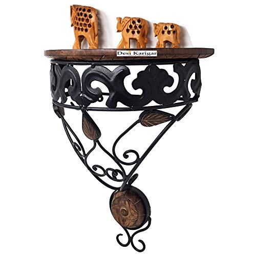 Wooden & Wrought Iron Wall Bracket ? D-Shape (Black 11x6x12)