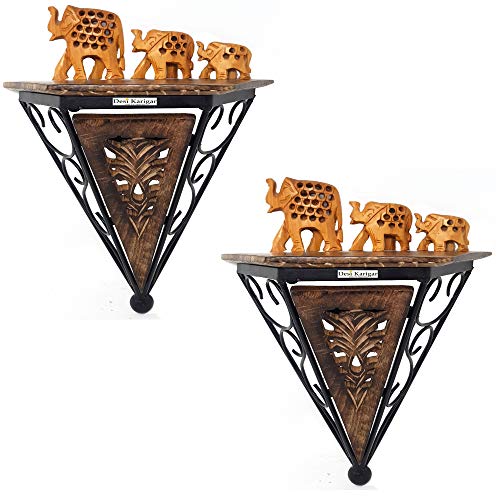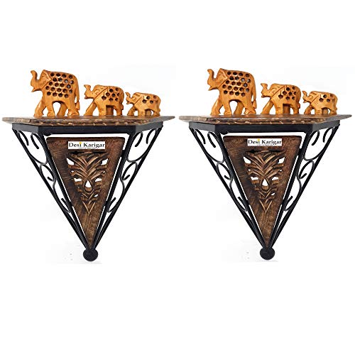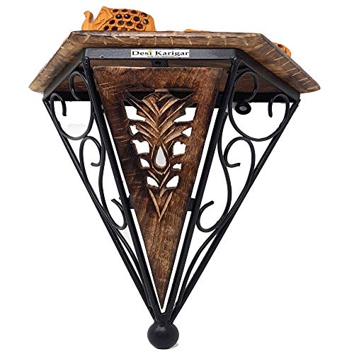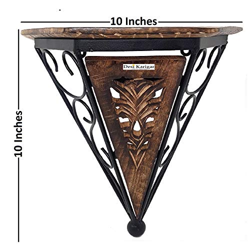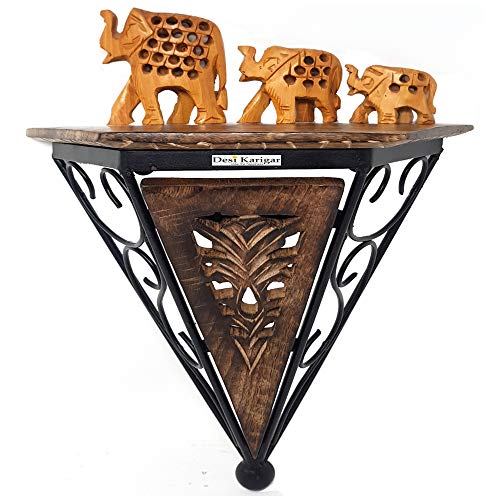 Wooden and iron rack shelf is made of high quality durable long life solid wood and iron with Black and Brown Finish. It adds warmth and character to any room with this beautiful rack shelf design. Its clean simple lines and edge detail complement any home decor. Save your room's space with the mini rack shelf to show off souveniers small treasures or art. Versatile mini rack shelf from the house of Desi Karigar features a unique small iron shelf shape. This sturdy shelf can be wall mounted. Use it to hold arts flower pots etc. It can also be hung on the wall to hold decor items. Bring home a fusion of style and beauty with this Wooden and iron rack shelf made by the craftsmen of Desi Karigar Saharanpur. SPECIALITY: · Handmade with pure Mango wood and iron · Authentic and unique design to hold your valuable art display · Beautiful design with best antique look polish which gives it shiny look · Adorned with a unique shape which gives it an indigenous appearance · Best iron rack shelf design with complex engineering · Strong and durable · Made by rural artisans of Desi Karigar Brand Saharanpur USABILITY: · Can be used for keeping your valuable art and decor items. · Will give you a variation from regular plastic glass and steel iron racks. · Will increase your decor value when you place them on your walls · Can be gifted during house warming ceremony birthday etc. · Can be gifted to friends relatives etc."