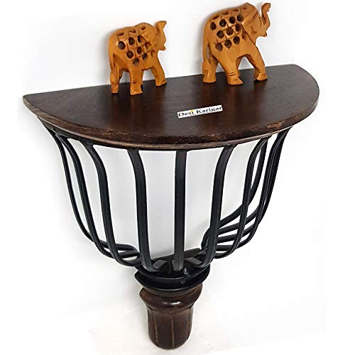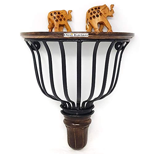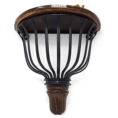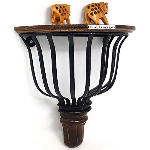 SPECIALITY: · Handmade with pure Wrought Iron and wood with Antique Black and brown finish · Authentic and unique design to decorate your room · Beautiful design with Antique Black Paint which gives it Antique look · Adorned with a unique shape which gives it an indigenous appearance · Best wall bracket design with complex engineering · Strong and durable · Made by rural artisans of Desi Karigar Brand Saharanpur USABILITY: · Can be used for decorating your Room or kids room · Can be used to decorate all walls of your house. · Will give you a variation from regular plastic glass and steel brackets · Will increase your decor value when you place them on your walls · Can be gifted during house warming ceremony birthdays Christmas etc. · Can be gifted to friends relatives etc. This wrought iron wall bracket is hand made and produced out of sustainable wrought iron. This wall bracket serves as a nice showpiece itself. This bracket shelf suits perfectly as decoration of your Room. Each iron bracket is individually branded by the natural grains of the iron and wood and the touch of the craftsman of Desi Karigar. Desi Karigar brings you the best of Indian handicraft products from all around India made by the rural artists. Their classic design and structure makes them a must have art amongst those who love collecting distinct showpieces. Their beautiful design detailed carving and lovely structure together make it a desirable accessory for your home. They can also prove to be a great gift for those who love gathering collectibles. "