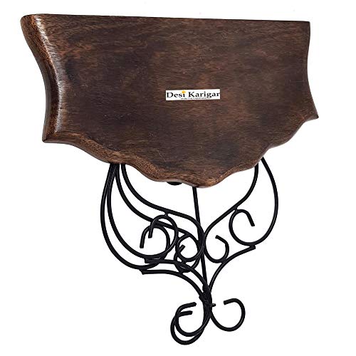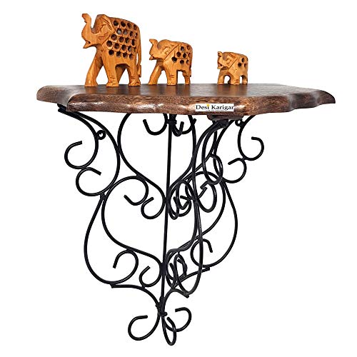 Wooden and iron rack shelf is made of high quality durable long life solid wood and iron with Black and Brown Finish. It adds warmth and character to any room with this beautiful rack shelf design. Its clean simple lines and edge detail complement any home decor. Save your room's space with the mini rack shelf to show off souveniers small treasures or art. Versatile mini rack shelf from the house of Desi Karigar features a unique small iron shelf shape. This sturdy shelf can be wall mounted. Use it to hold arts flower pots etc. It can also be hung on the wall to hold decor items. Bring home a fusion of style and beauty with this Wooden and iron rack shelf made by the craftsmen of Desi Karigar Saharanpur. SPECIALITY: · Handmade with pure Mango wood and iron · Authentic and unique design to hold your valuable art display · Beautiful design with best antique look polish which gives it shiny look · Adorned with a unique shape which gives it an indigenous appearance · Best iron rack shelf design with complex engineering · Strong and durable · Made by rural artisans of Desi Karigar Brand Saharanpur USABILITY: · Can be used for keeping your valuable art and decor items. · Will give you a variation from regular plastic glass and steel iron racks. · Will increase your decor value when you place them on your walls · Can be gifted during house warming ceremony birthday etc. · Can be gifted to friends relatives etc."