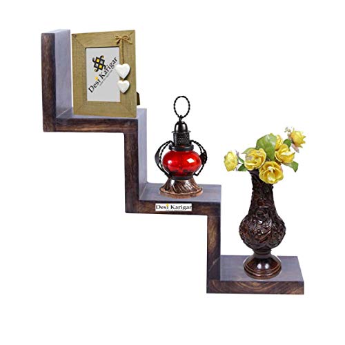 Versatile wall shelf feature a unique ""W"" shape. This sturdy shelf can be mounted both horizontally & vertically. Use it to hold books CDs DVDs and more. It can also be hung in a stairs step fashion to hold decor items collectibles and more. Wooden rack shelf is made of high quality durable long life solid wood with nice Finish. It adds warmth and character to any room with this beautiful rack shelf design. Its clean simple lines and edge detail complement any home decor. Save your room's space with the rack shelf to show off souveniers small treasures or art. Versatile wooden rack shelf from the house of Desi Karigar features a unique W shelf shape. This sturdy shelf can be wall mounted. Use it to hold arts flower pots etc. It can also be hung on the wall to hold decor items. Bring home a fusion of style and beauty with this Wooden rack shelf made by the craftsmen of Desi Karigar Saharanpur. SPECIALITY: · Handmade with pure Mango wood · Authentic and unique design to hold your valuable art display · Beautiful design with best antique look polish which gives it shiny look · Adorned with a unique shape which gives it an indigenous appearance · Best wooden rack shelf design with complex engineering · Strong and durable · Made by rural artisans of Desi Karigar Brand Saharanpur USABILITY: · Can be used for keeping your valuable art and decor items. · Will give you a variation from regular plastic glass and steel racks. · Will increase your decor value when you place them on your walls · Can be gifted during house warming ceremony birthday etc. · Can be gifted to friends relatives etc. "